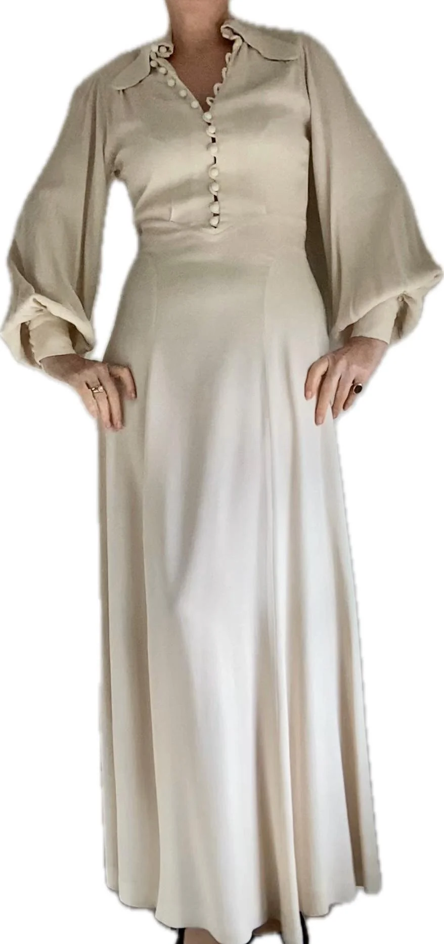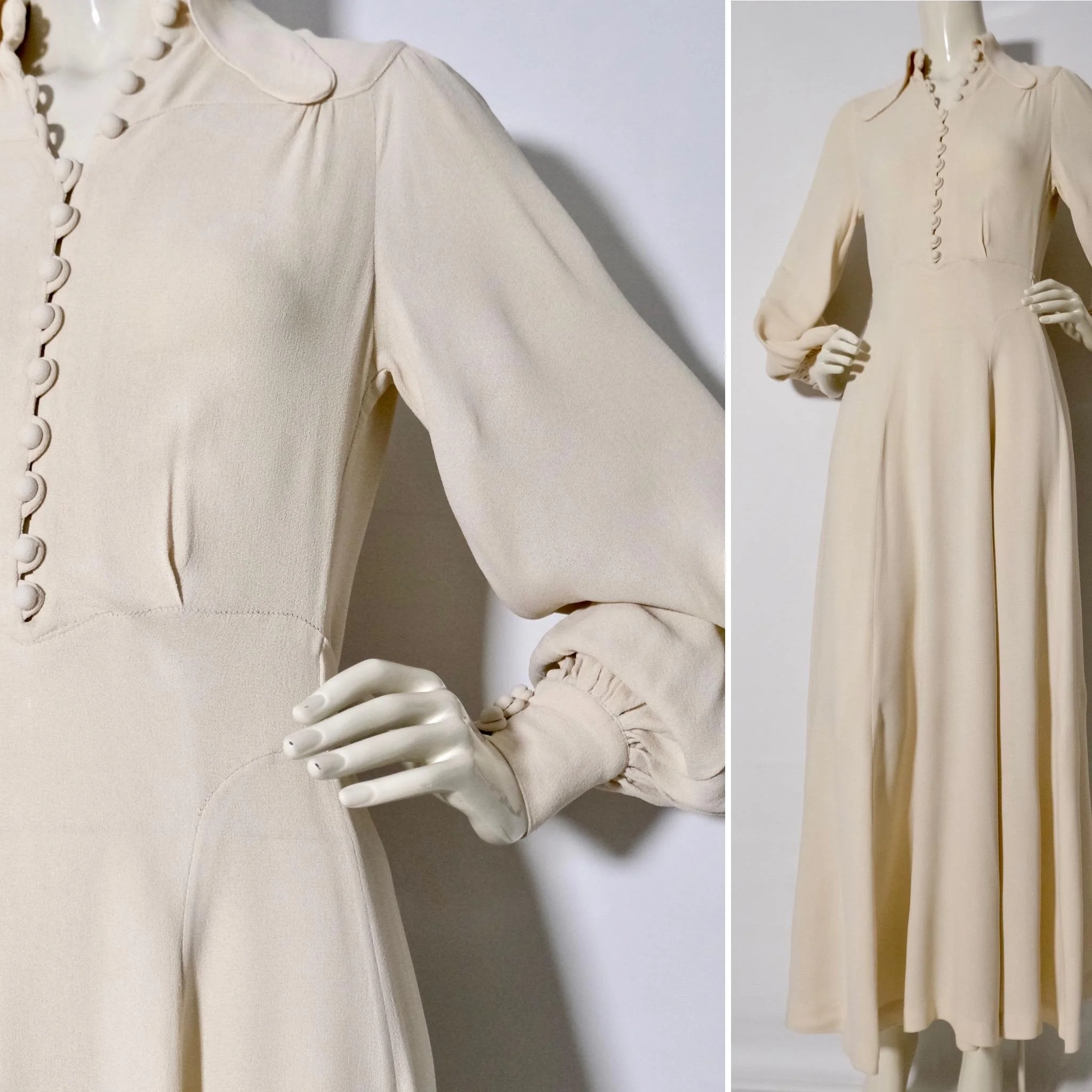 Ossie Clark for Radley Vintage early 1970s Cream Moss Crepe Maxi Dress 70s Wedding Bridal perfect condition uk 10-12