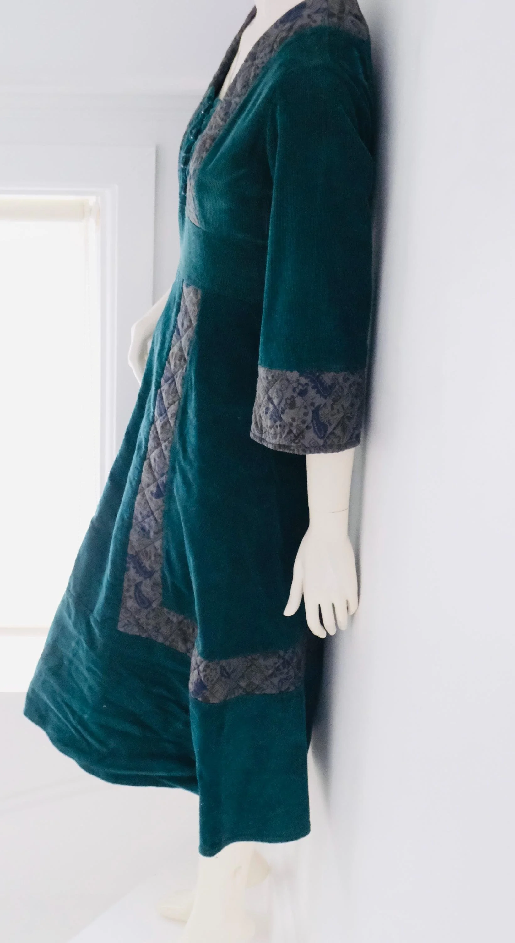 The Dove Clothing Company 1970s 70s Corduroy mid length dress with Quilted printed detail. uk10
